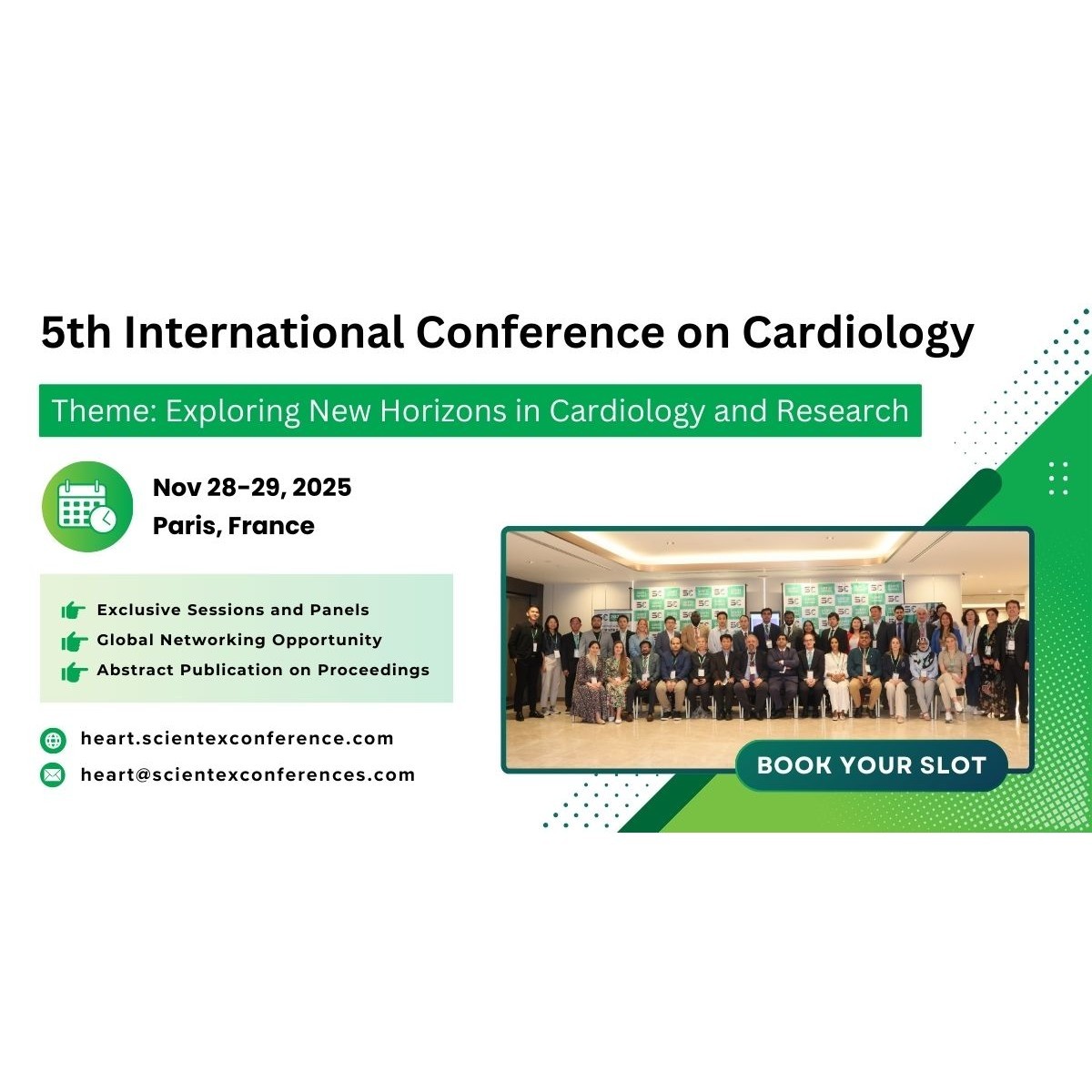 We are delighted to invite you to the 5th International Conference on Cardiology, from November 28-29, 2025 in Paris, France where ground-breaking discoveries and advancements in cardiac care will take center stage under the theme “Exploring New Horizons in Cardiology and Research”