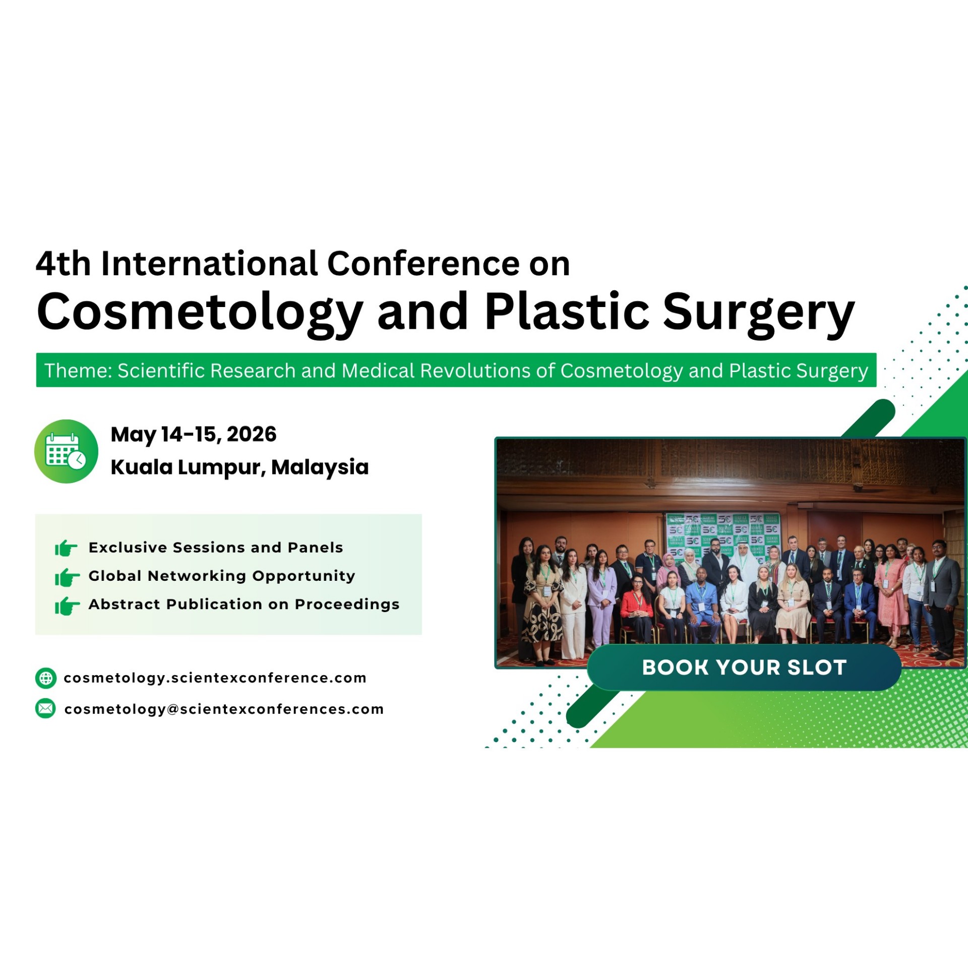 It is our great pleasure to invite you to the 4th International Conference on Cosmetology and Plastic Surgery, set to take place on May 14–15, 2026, in the dynamic city of Kuala Lumpur, Malaysia. Guided by the theme “Scientific Research and Medical Revolutions in Cosmetology & Plastic Surgery,” this international gathering will unite