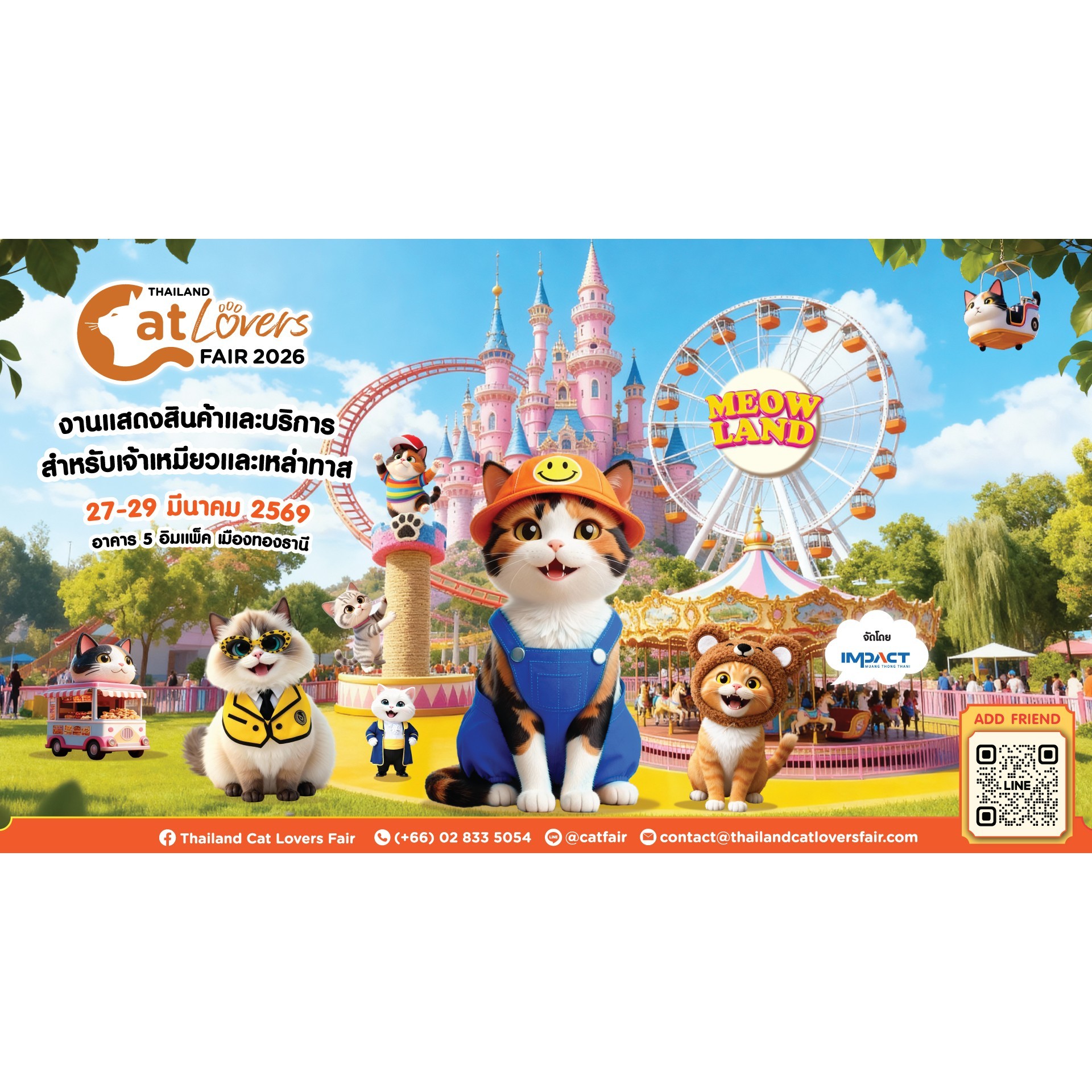 Bangkok, Thailand - 23 March 2026) – Thailand’s biggest event for cat lovers, Thailand Cat Lovers Fair 2026, is set to take place from March 27–29, 2026 at Hall 5, IMPACT Muang Thong Thani. Organized by IMPACT Exhibition Management Co., Ltd., a leading exhibition organizer in the pet industry, the event will be held under the theme “MEOW LAND,” offering a unique experience for cat owners and enthusiasts to enjoy quality time with their feline companions. Spanning over 5,000 square meters, the fair will showcase a wide range of products, services, and activities tailored to the lifestyle of modern pet owners. The event is expected to attract more than 25,000 visitors and generate over 12 million baht in economic value.